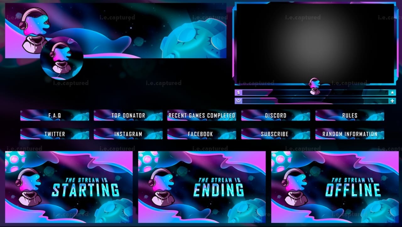 This overlay was built around character and atmosphere rather than sharp neon aggression. The streamer already had this mascot style figure, so the goal wasn’t to redesign everything but it was to build a full streaming environment around that identity. I wanted it to feel immersive, almost like you are inside their world instead of just watching a layout on top of gameplay. The color palette was important here. We leaned into that pink and cyan blend to keep it vibrant but not overwhelming. At one point, the saturation was too high and it started feeling cartoonish in a bad way. So I pulled it back slightly and balanced the glow so it still pops on screen without washing everything out. The webcam frame was designed to stay clean and lightweight. For stream overlays, the biggest mistake is making frames too thick. It kills the viewing area. So I kept it minimal, added subtle glow accents and made sure it still stands out even during darker games. The Starting, Ending and Offline screens follow the same visual language so the channel feels cohesive. I didn’t want each screen looking like a separate design. Consistency matters more than flashy changes. The info panels (FAQ, Top Donator, Socials, etc.) were built modular so they can be rearranged without breaking the layout. Streamers change things often, the design shouldn’t collapse when they do. This pack came together nicely. It feels energetic, colorful and clean without being chaotic, which is exactly what we were aiming for.
